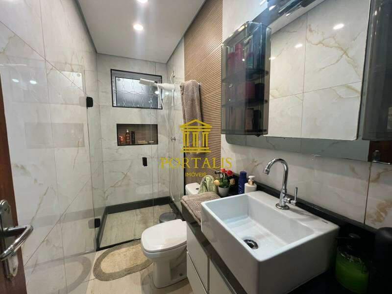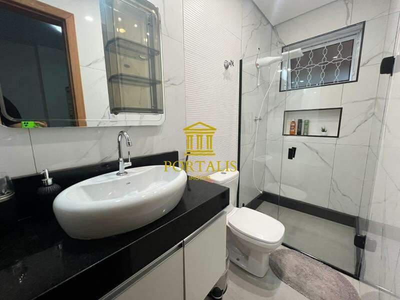 Banheiros (social e suíte) com armários e box em blindex