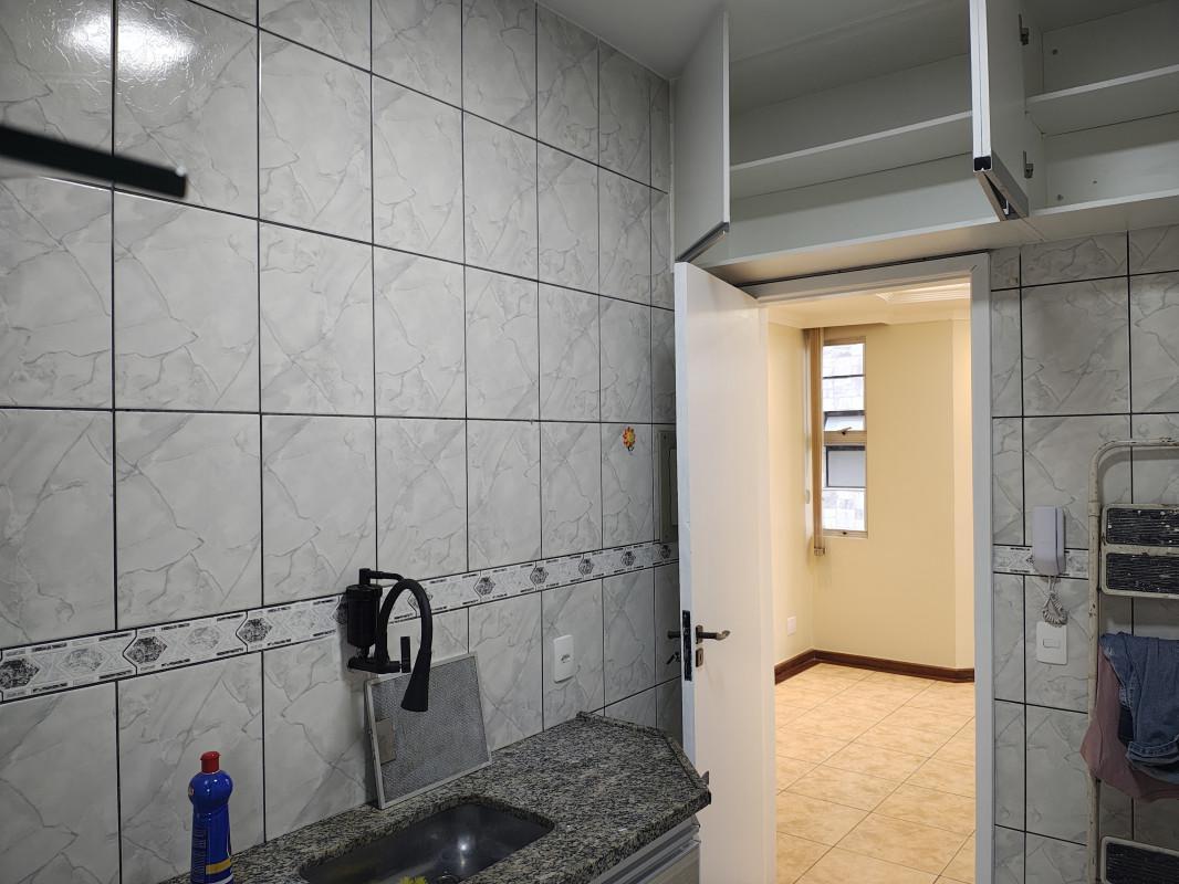 Cozinha com piso em porcelanato, com armários embutidos