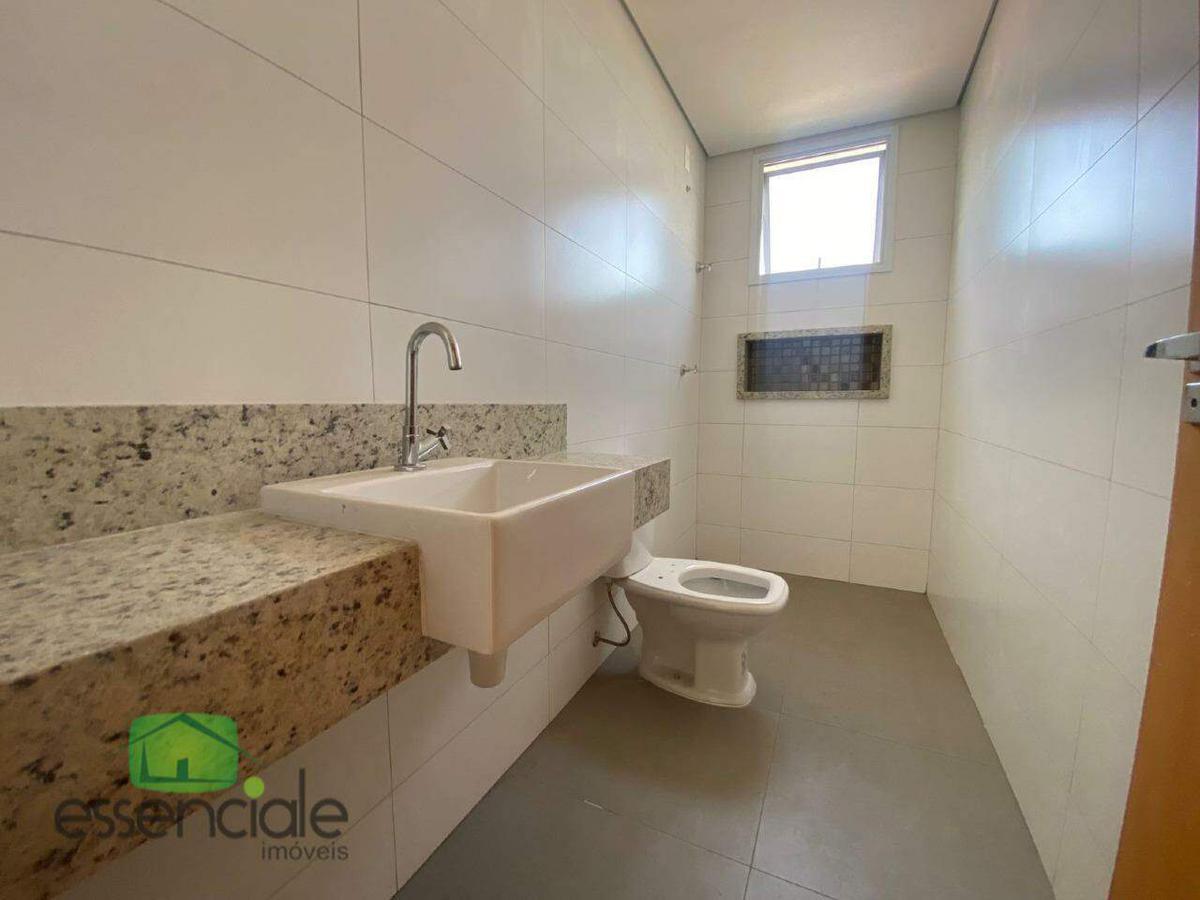 O acabamento é de alto padrão, com piso em porcelanato, bancadas em granito, pias sobrepostas e janelas tipo venezianas. A sala e a suíte possuem pré-disposição para ar-condicionado, além de instalação para aquecimento solar e gás canalizado com medidores individuais.