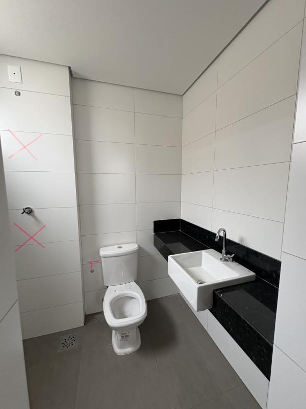 - Banheiros com azulejo esmaltado, metais cromados e louças vitrificadas