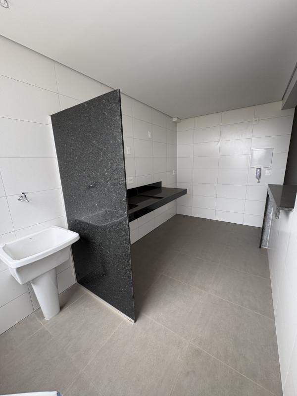 - Cozinha com piso em porcelanato ou cerâmica, azulejo esmaltado e bancada em granito polido