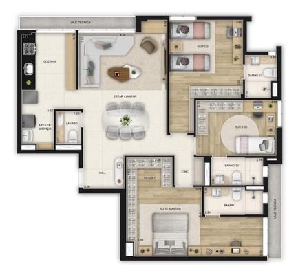 Plantas com 2 ou 3 suítes, projetadas com inteligência e conforto