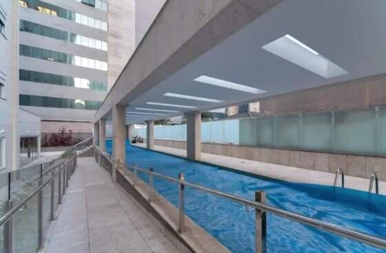 Piscina com raia coberta e aquecida