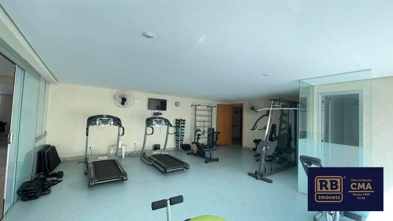 Banheiros (social e suíte) com armários, espelhos e box em vidro temperado