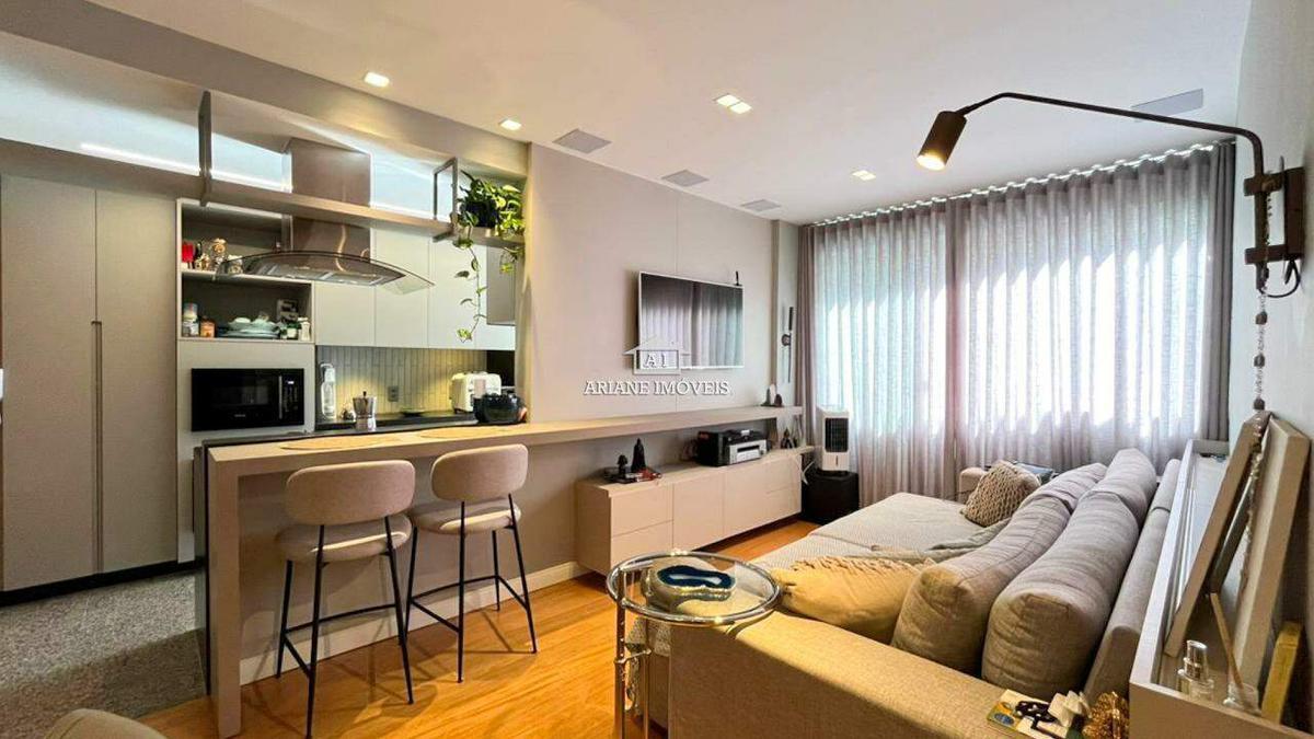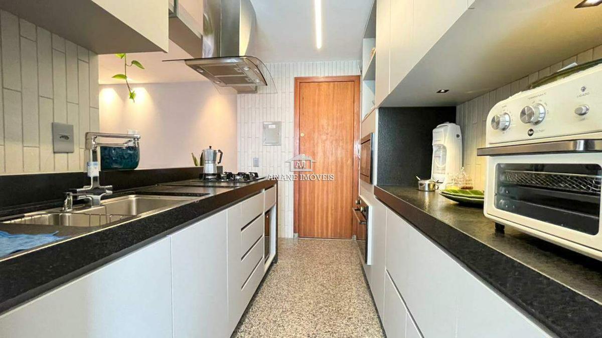 Apartamento de aproximadamente 96m² conta com 01 sala ampla para dois ambientes, com piso em laminado de madeira e iluminação planejada, 03 quartos espaçosos com piso em tábua corrida e armários planejados, sendo 01 suíte com closet, bancada em granito, armários e box em blindex. A cozinha é moderna e funcional, equipada com bancada e piso em granito, coifa e cooktop, além de 01 banheiro social com acabamento em granito, armários e box em blindex. O lavabo possui pia em cuba de apoio e bancada em granito, e a área de serviço dispõe de armários planejados e tanque. O apartamento, recém-reformado, oferece ainda 02 vagas de garagem em linha e cobertas.