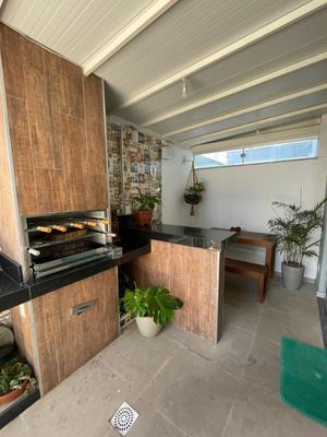 02 áreas pirvativas externas, (parte coberta telhado termo acustico) uma com acesso pela sala (espaço gourmet, ducha, bancada em granito), outra pela área de serviço (lavanderia e ampla área ivre).