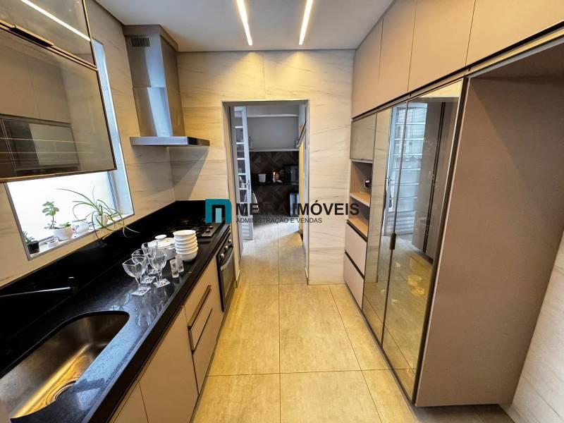 O imóvel conta com ampla sala para 2 ambientes com rebaixamento em gesso, iluminação planejada e piso em porcelanato, varanda e lavabo. Na parte íntima, são 3 quartos amplos com piso laminado de madeira, sendo 2 com armários planejados e 1 suíte. O banho social possui bancada em porcelanato, espelho e box em blindex, e o banho da suíte segue o mesmo padrão, com bancada em porcelanato, espelho e box em blindex. A cozinha é funcional, com armários planejados, bancadas em granito, área de serviço separada, despensa, banho de empregada e área externa descoberta, garantindo ainda mais praticidade no dia a dia.