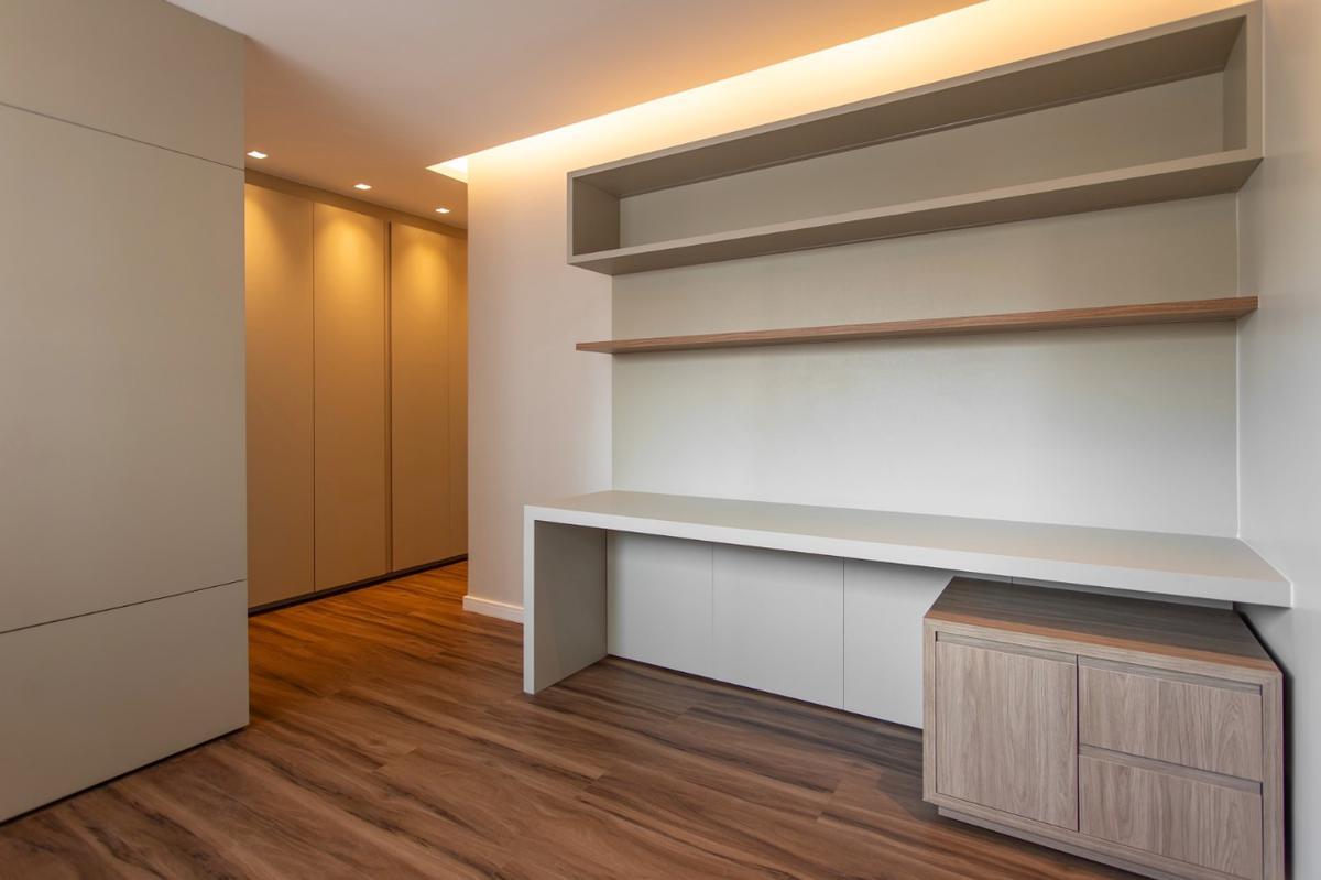Apto modelo, com armários, rebaixamento de gesso e iluminação.