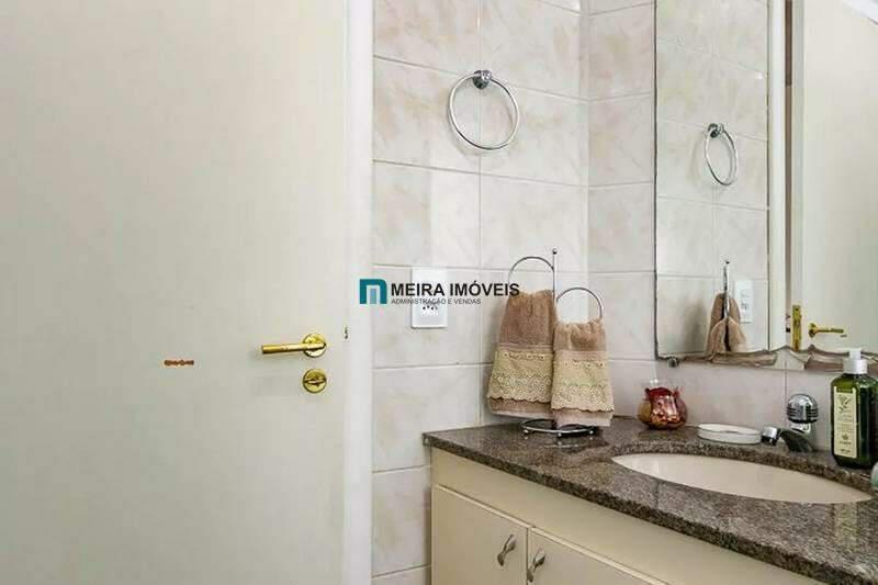 ¿ Banheiro social com bancada em granito, armários, espelho e box em blindex;
