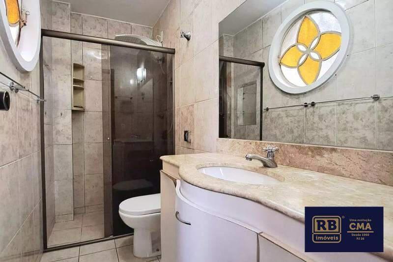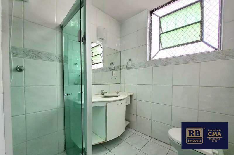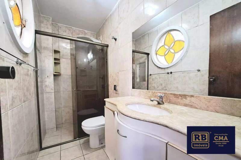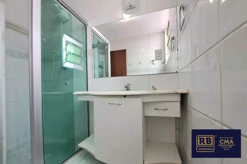 Banheiros (social e suíte) com excelente acabamento em cerâmica, espelho, armários e box em blindex.
