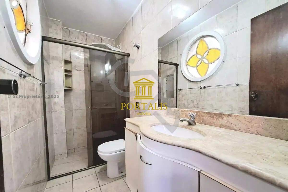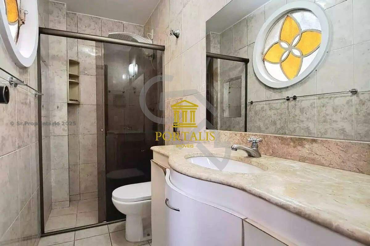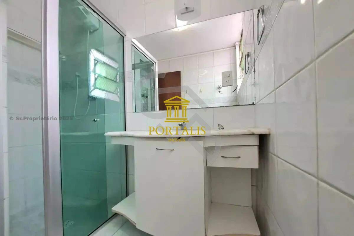 Banheiros (social e suíte) com excelente acabamento em cerâmica, espelho, armários e box em blindex.