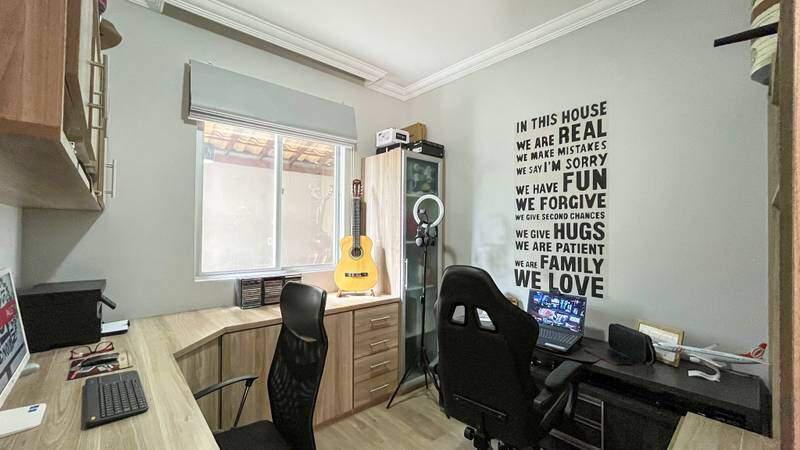 3 quartos espaçosos com piso laminado e móveis planejados. A suíte conta com pia esculpida em cuba, espelho, armários e box em blindex