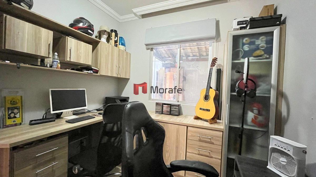Quarto escritório: mobília, cortina persiana, 2 cadeiras de escritório sendo 1 gamer, raque