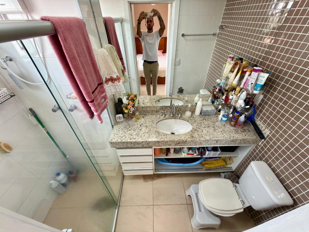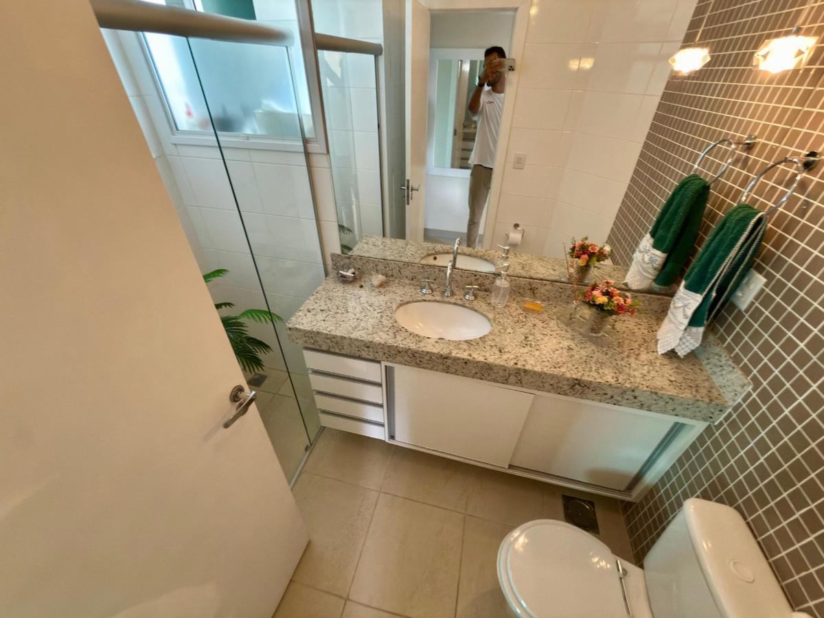 Os banheiros possuem armários, box em vidro e ótimo acabamento.