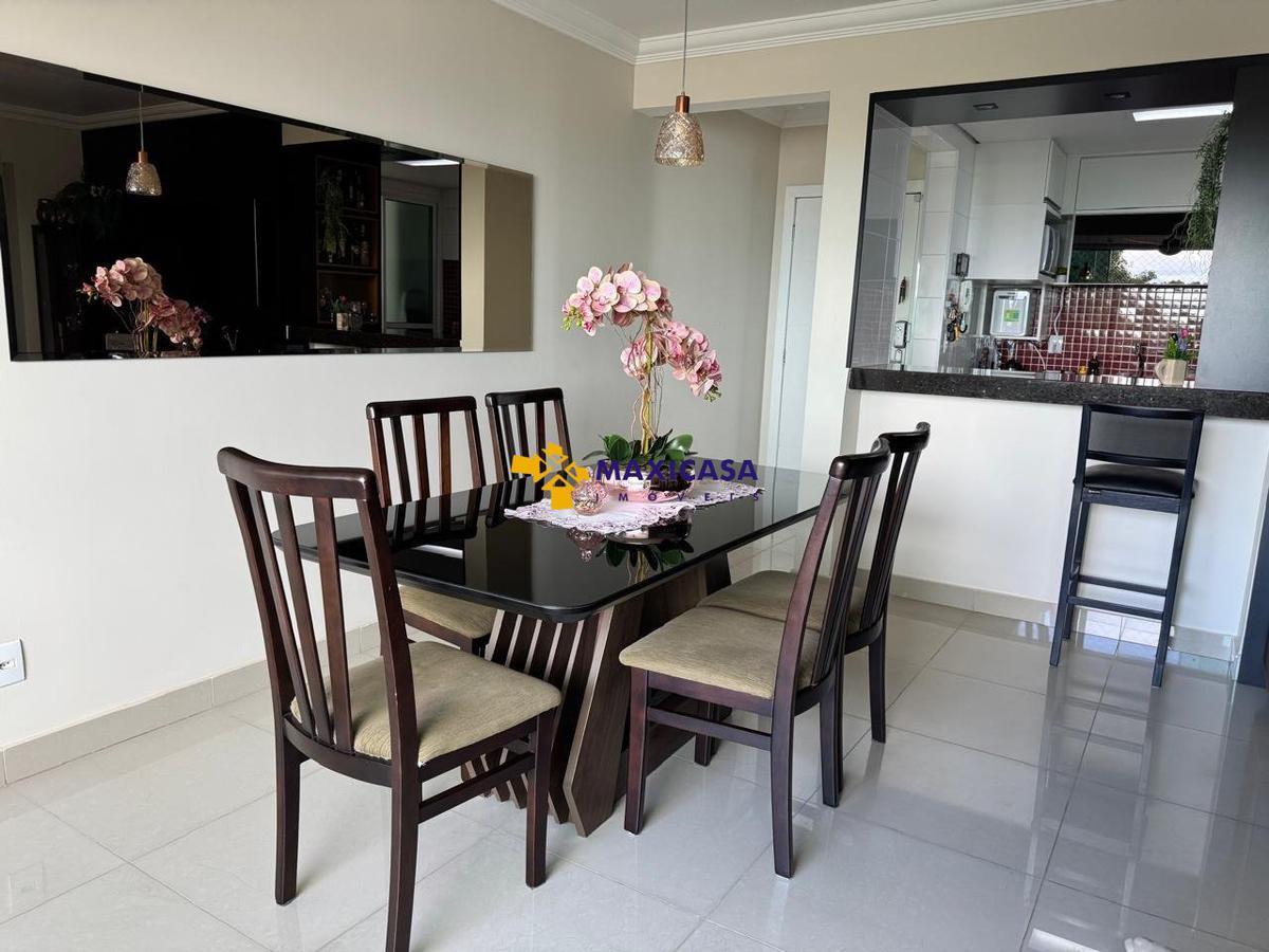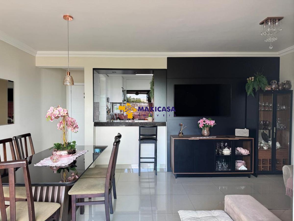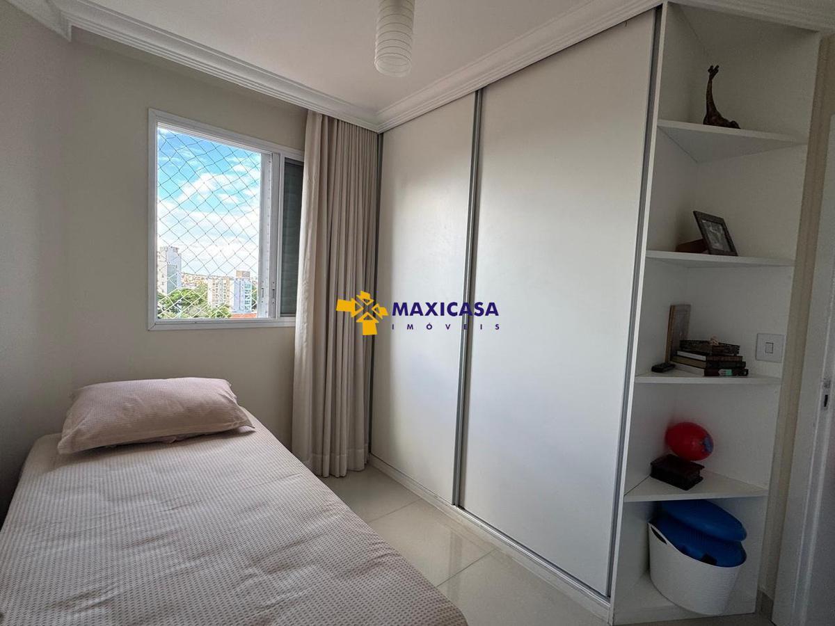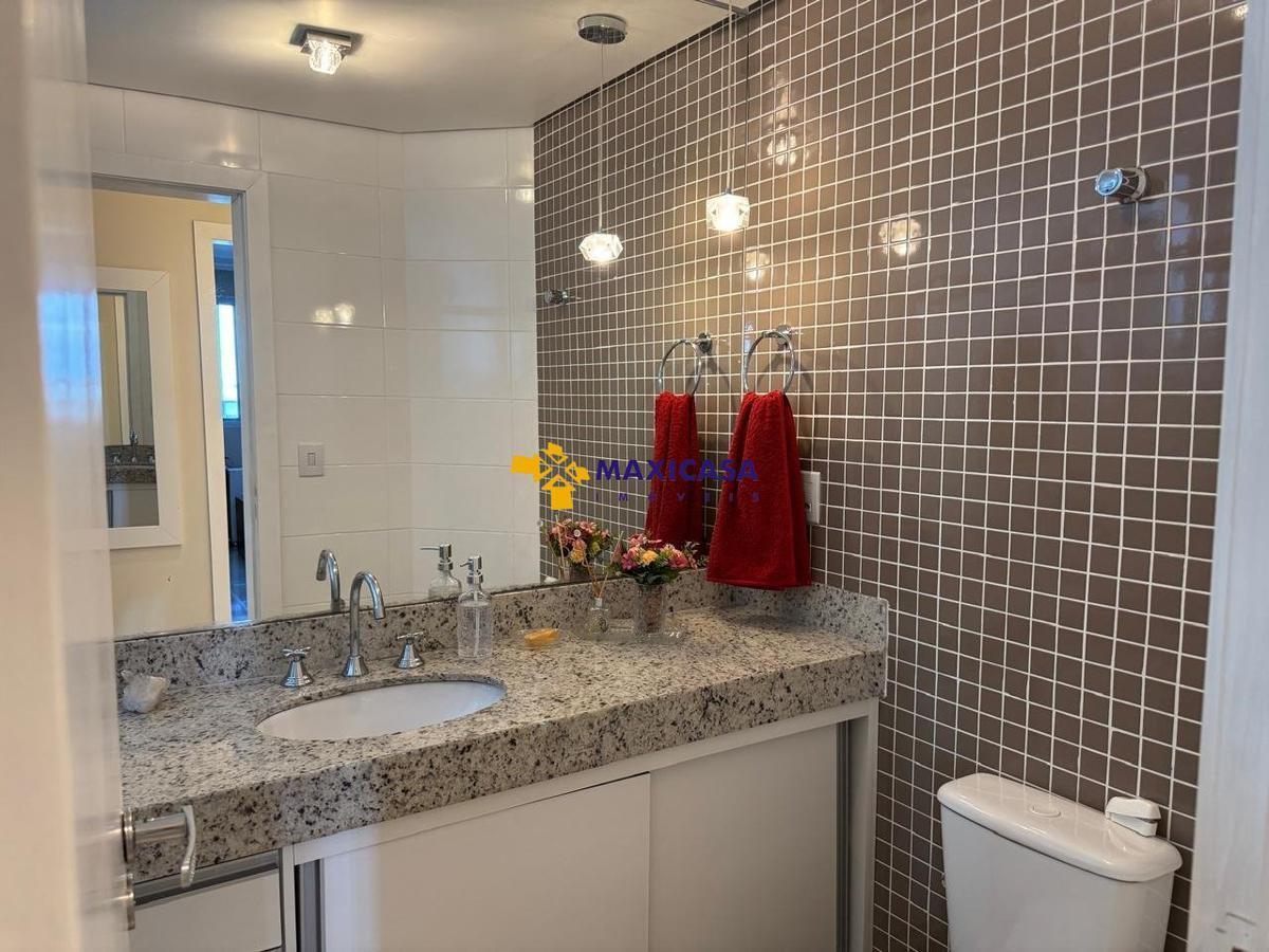 Possui aproximadamente 95 m2, com 3 quartos, sendo 2 deles suítes, com armários planejados, 3 banheiros com box blindes e armários planejados, sala de estar e jantar conjugada com varanda, cozinha e área de serviço com armários planejados, garagem para 2 carros (vagas paralelas e cobertas). Apartamento com acabamento interno muito requintado. Gás e água individuais por apartamento. Água aquecida nos banheiros. Prédio com elevador.
