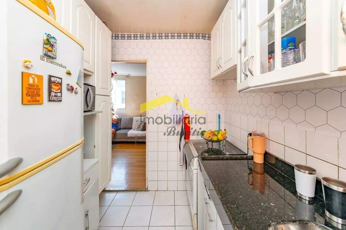 São 3 quartos, sendo 1 suíte, além de banheiro social. A cozinha é completa, planejada com armários, oferecendo organização e aproveitamento de espaço.