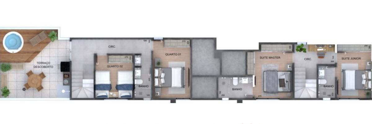 * Janelas com persianas integradas, que proporcionam mais conforto visual e controle da luminosidade.