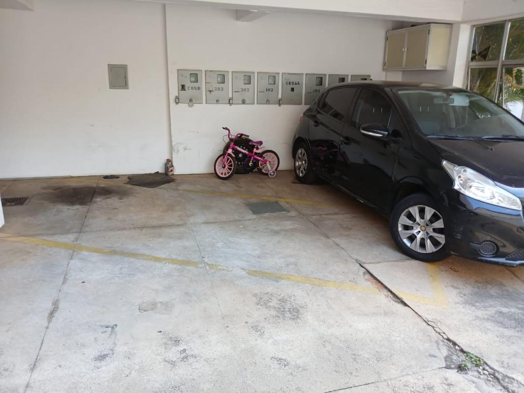 Uma vaga de garagem livre que cabe dois carros pequenos.