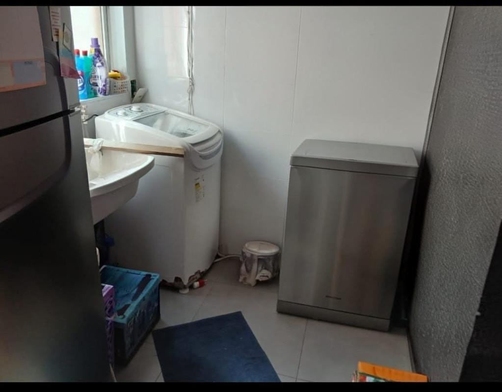 Uma área de serviço com piso em porcelanato.