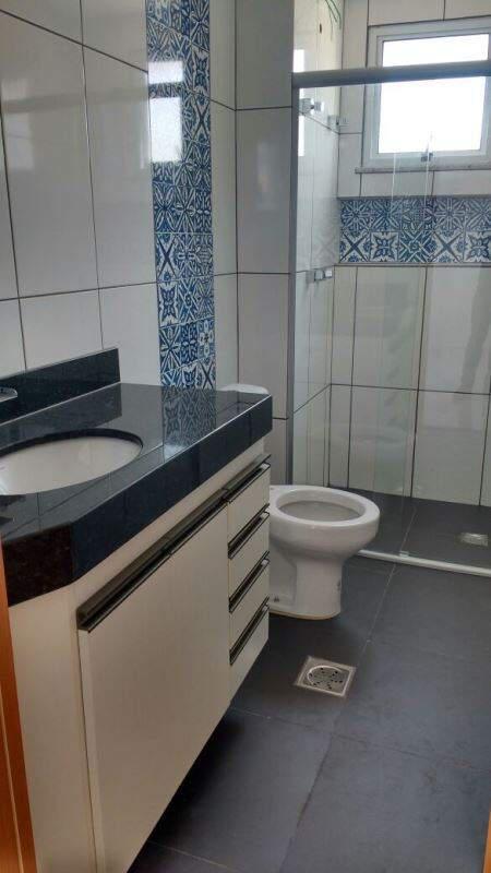 Excelente apartamento com Sala: Piso e rodapés em porcelanato mesclado, Corredor: Piso e rodapés em porcelanato mesclado, Banho Social: Piso em porcelanato preto, paredes revestidas até o teto em porcelanato branco com faixa decorada do chão ao teto atrás do vaso. Box de vidro temperado transparente novo, pia em granito, armário sob a pia, Cozinha: Piso em porcelanato preto, parede revestida em porcelanato branco até o teto, 01 porta de correr nova em perfeito estado, pia em granito com bojo e torneira inox, armário sob a pia, bancada de granito com armário, Área de serviço, 03 quartos com armários sendo 01 suíte, com Piso e rodapés em porcelanato mesclado, Banho suíte: Piso em porcelanato preto, paredes revestidas até o teto em porcelanato branco com faixa decorada do chão ao teto atrás do vaso. Box de vidro temperado transparente novo, pia em granito com bojo, armário sob a pia. 02 vagas de garagem em linha.