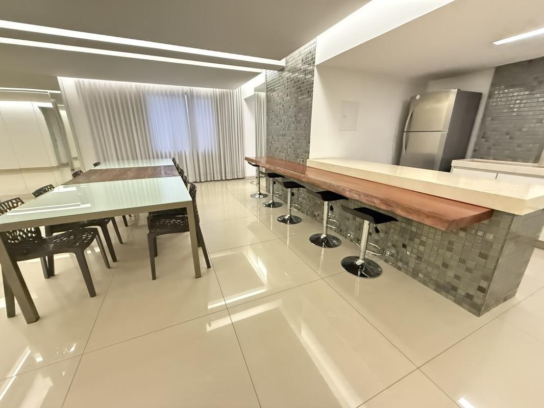 - Salão de festas amplo, com 2 banheiros e bancada em mármore nobre.