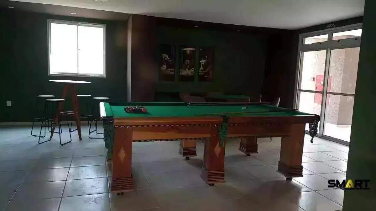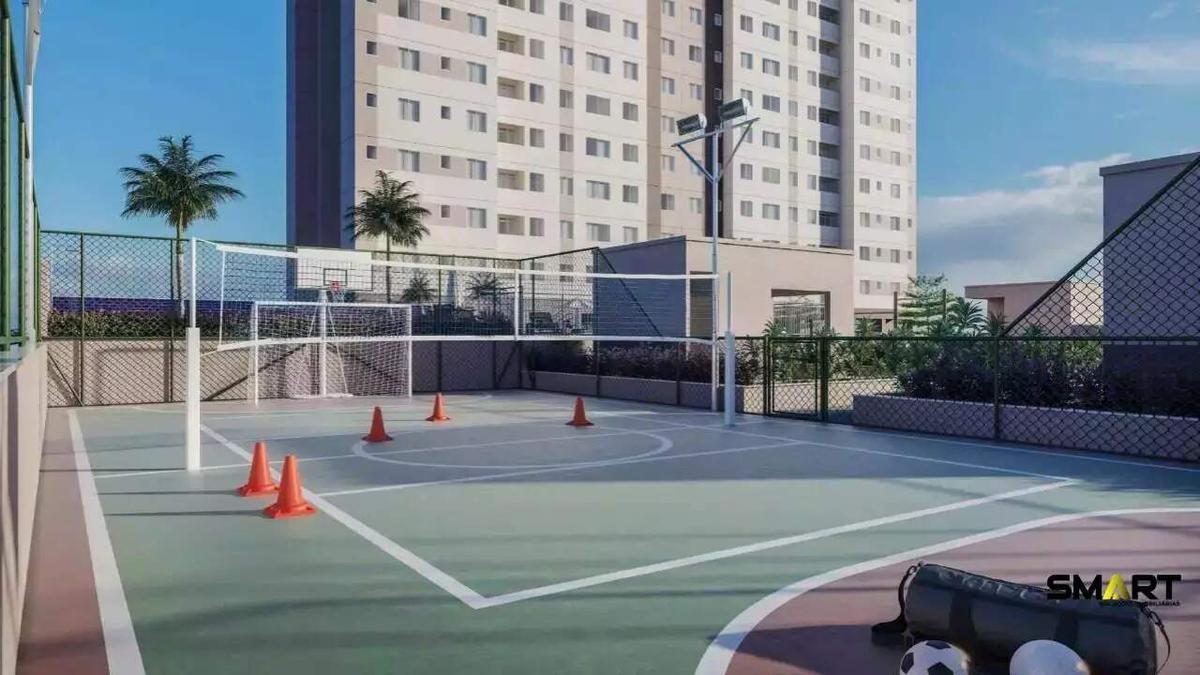 O condomínio possui lazer completo com 2 piscinas, quadra poliesportiva, 2 áreas de churrasco, espaço gourmet, salão de festas, espaço kids e espaço teen, playground, sala de jogos, academia, além de outras comodidades como portaria 24h, interfone, elevador, gramado e mais.