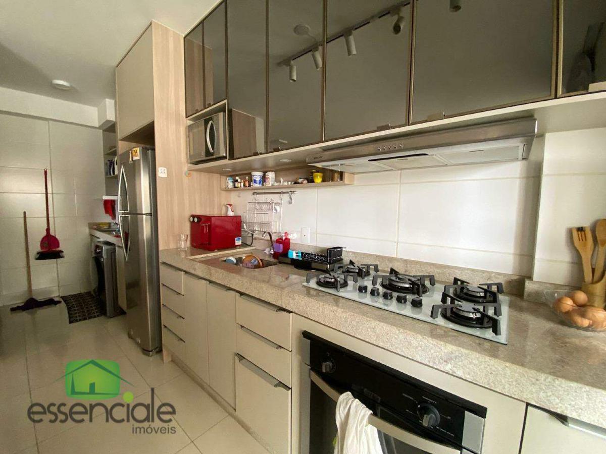 O apartamento possui 88,40m² de área útil, distribuídos em 03 quartos, sendo 02 com armários planejados e 01 suíte. A sala é ampla, comporta dois ambientes e possui varanda gourmet com churrasqueira a gás. Cozinha em estilo americano, integrada à área de serviço, banho social com armário e box em blindex.