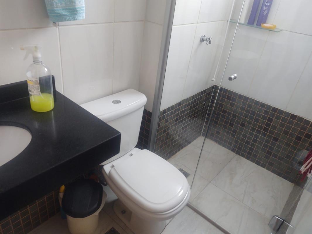 Banheiros com Acabamento de Alta Qualidade: Os banheiros são revestidos em porcelanato, com bancadas em granito, armários e box em vidro temperado.