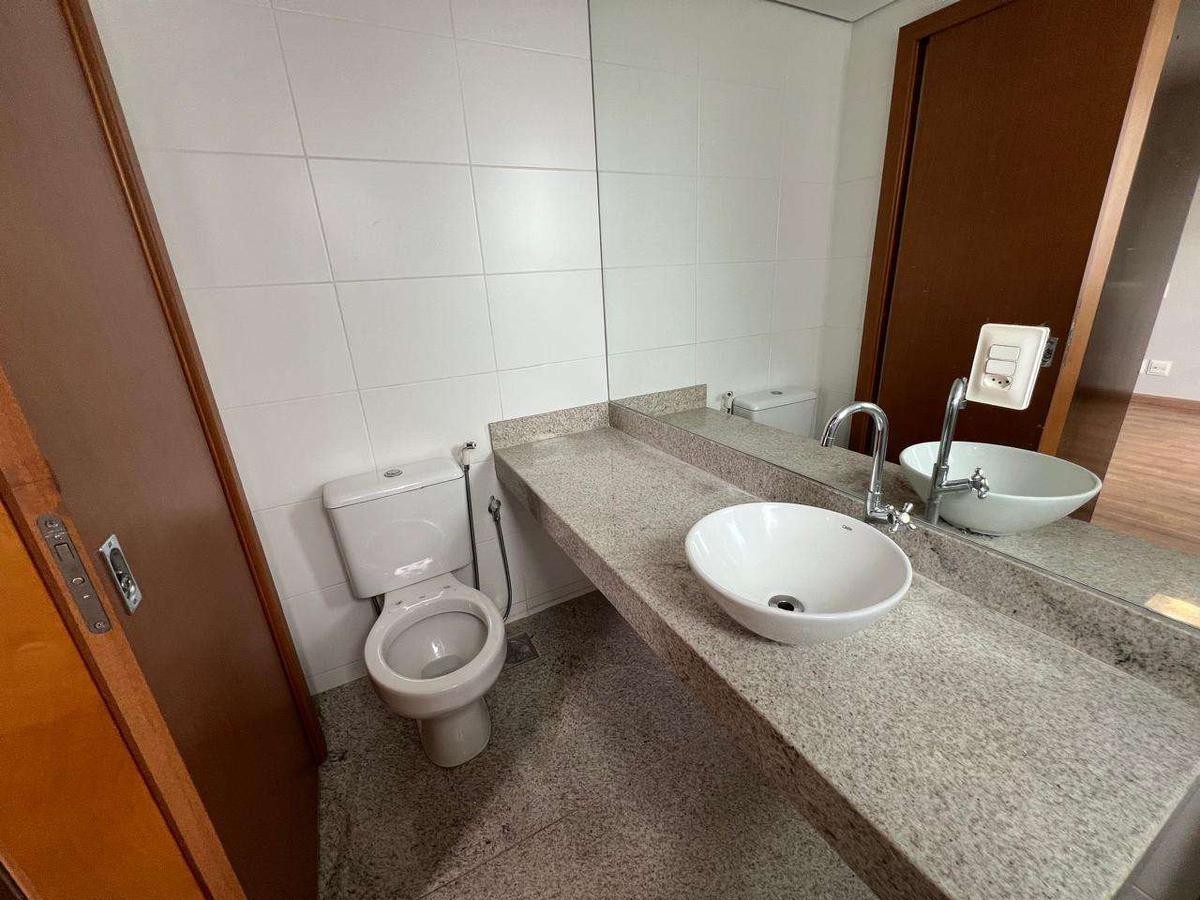 Na área íntima, são 3 quartos, sendo 1 suíte, com janelas com venezianas. O imóvel conta ainda com 3 banheiros e 1 lavabo.