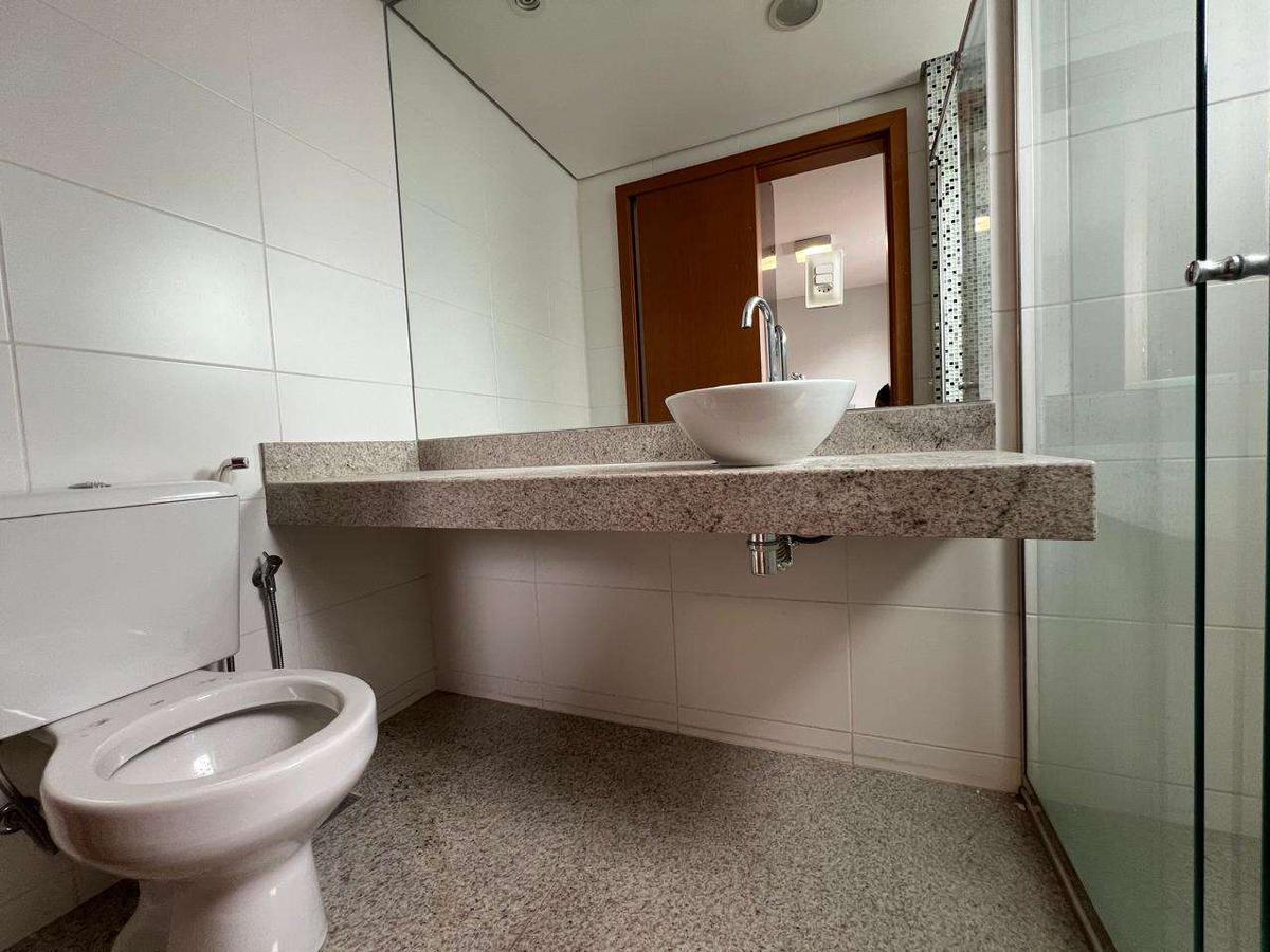Na área íntima, são 3 quartos, sendo 1 suíte, com janelas com venezianas. O imóvel conta ainda com 3 banheiros e 1 lavabo.
