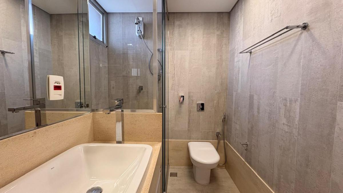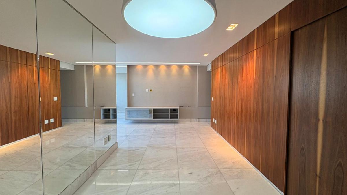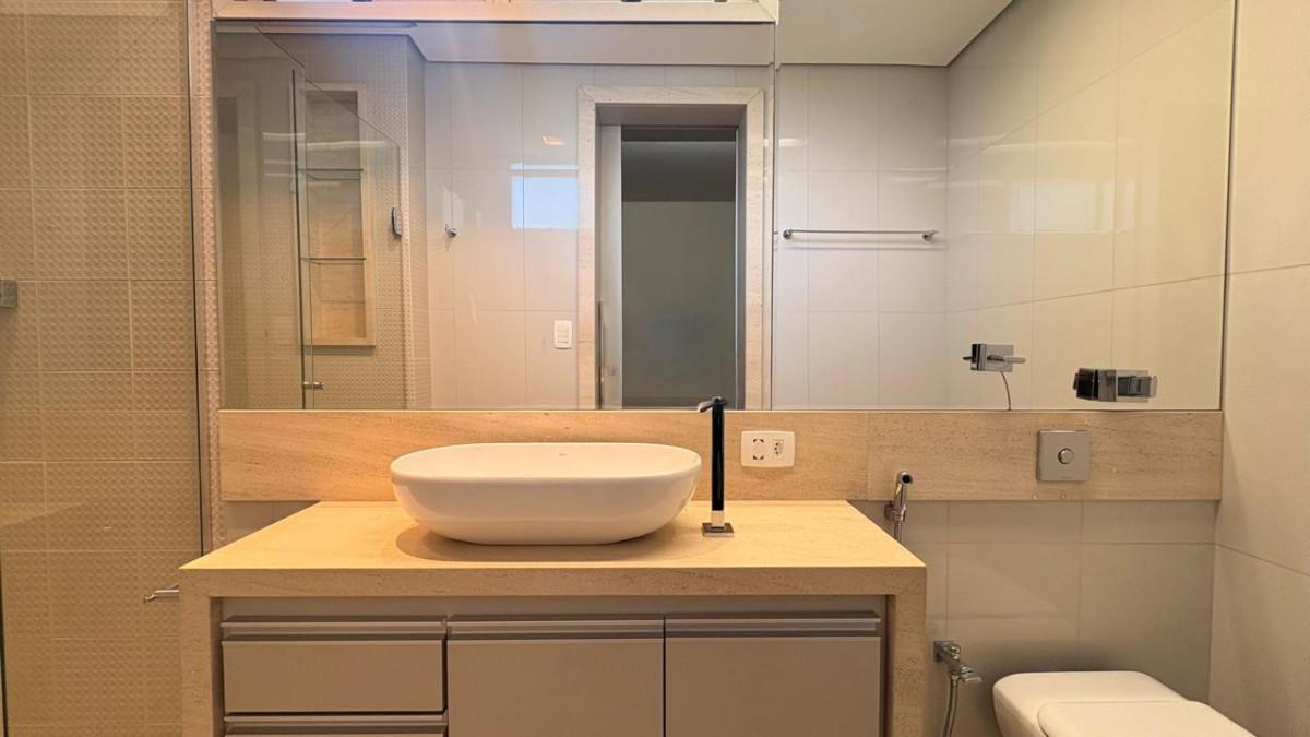 Apartamento com área de 115m², sala ampla para 02 ambientes, com piso em mármore polido, teto rebaixado, iluminação toda planejada, decorada com espelho e móveis planejados, 03 quartos espaçosos, todos com armários planejados, iluminação planejada e piso vinílico de madeira, sendo 01 suíte com bancada em mármore, pia em cuba de apoio, espelho e box em blindex, banheiro social com bancada em mármore, espelho, armários planejados e box em blindex, cozinha espaçosa e funcional, com piso em porcelanato, coifa, forno embutido, armários planejados e bancada em granito, área de serviço com dois tanques e armários planejados.