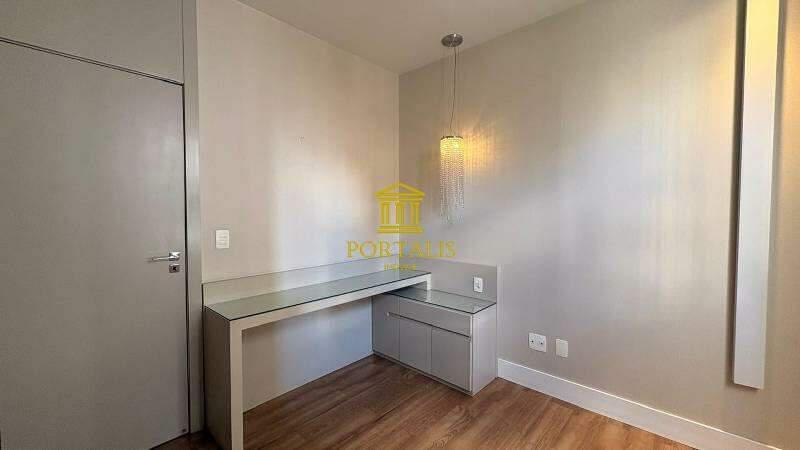 3 quartos espaçosos, todos com armários planejados, iluminação planejada e piso vinílico de madeira, sendo uma suíte com bancada em mármore, pia em cuba de apoio, espelho e box em blindex