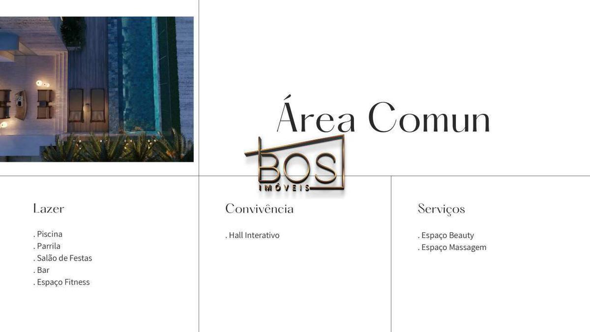 * Tomadas USB nos quartos, janelas com veneziana, app para gestão de condomínio, previsão para ar-condicionado nos quartos e sala, duchas higiênicas nos banhos, medição individualizada, torneiras mono comando, previsão de infraestrutura elétrica e hidráulica.