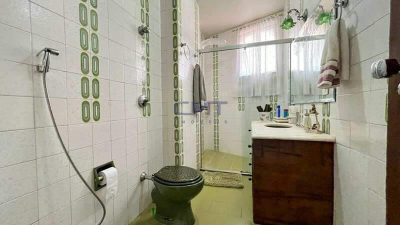 3 quartos amplos, todos com piso em taco de madeira, armários, sendo uma suíte conjugada com antigo quarto de empregada, com bancada em granito, espelho e box em blindex