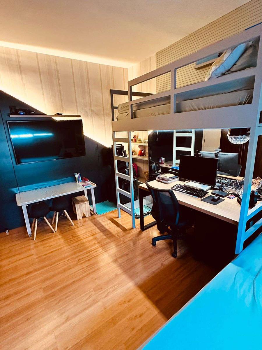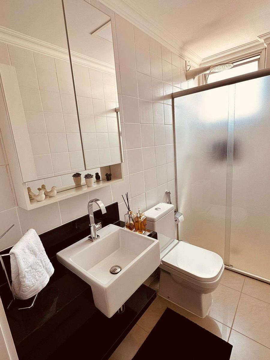 3 quartos sendo 1 suíte reformada, com piso em laminado de madeira e armários; banhos suíte e social com bancada em granito, box, armários e espelhos;