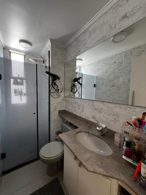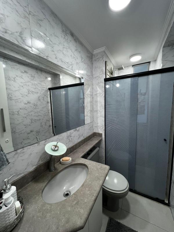 Banho social com armários e box em blindex;