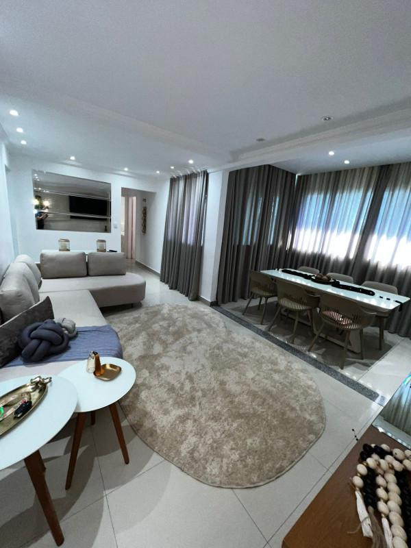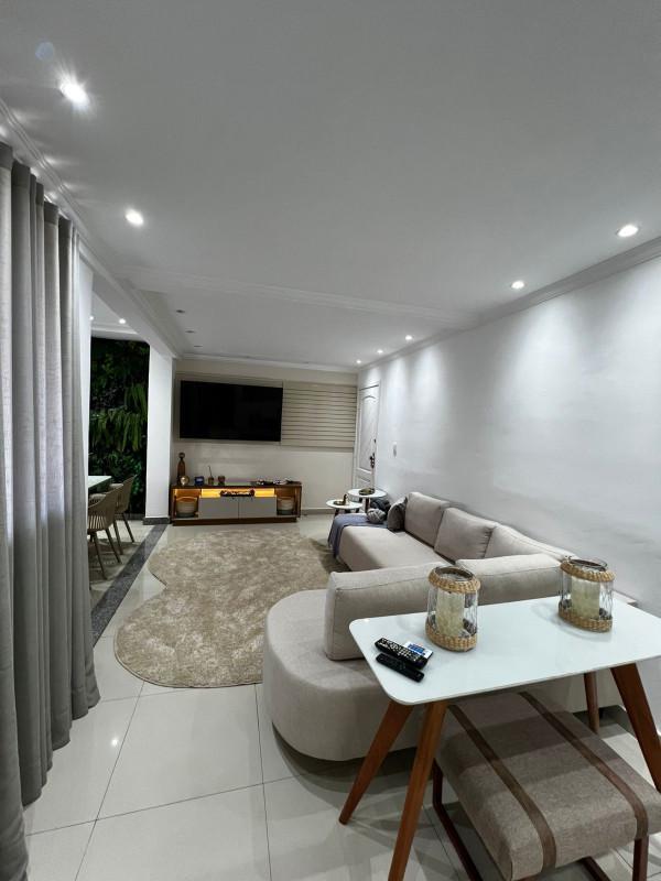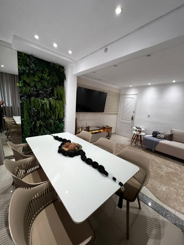 Sala ampla para dois ambientes com acabamentos de alto padrão;