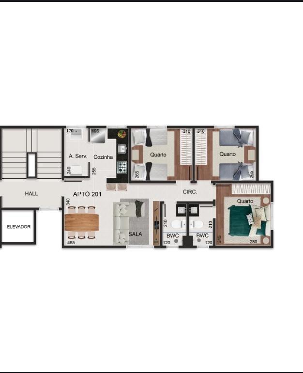- Com 3 quartos, 1 com suíte