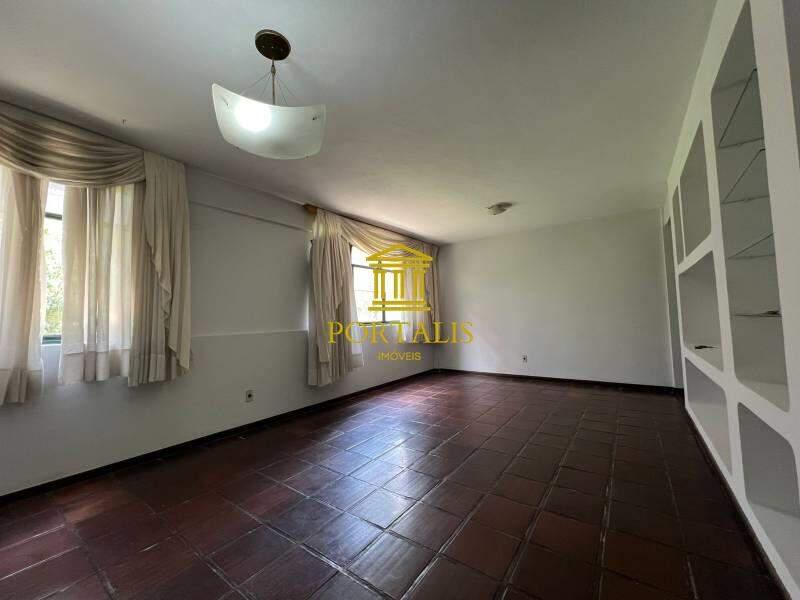 1 sala ampla para dois ambientes com piso em cerâmica rústica e estante embutida em alvenaria