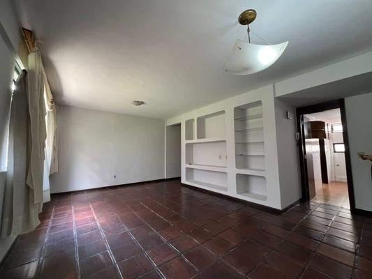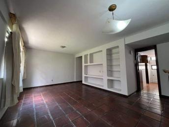 1 sala ampla para dois ambientes com piso em cerâmica rústica e estante embutida em alvenaria