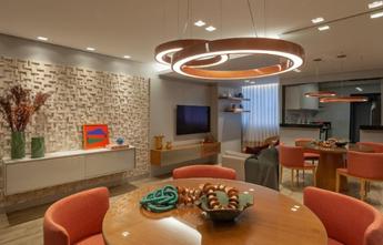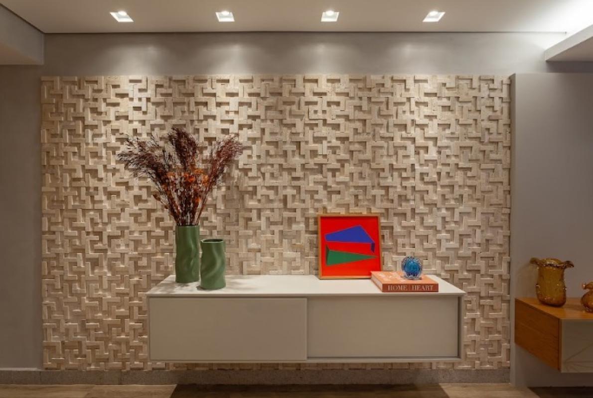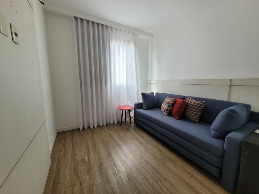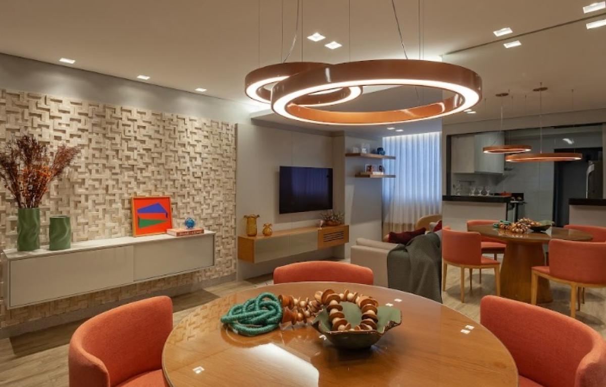 - Sala para 2 ambientes com iluminação especial, espelho e painéis, piso em vinílico amadeirado.