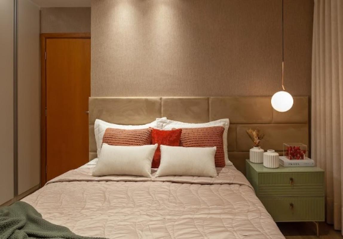 - 3 quartos com armários, sendo uma suíte, e piso vinílico amadeirado.