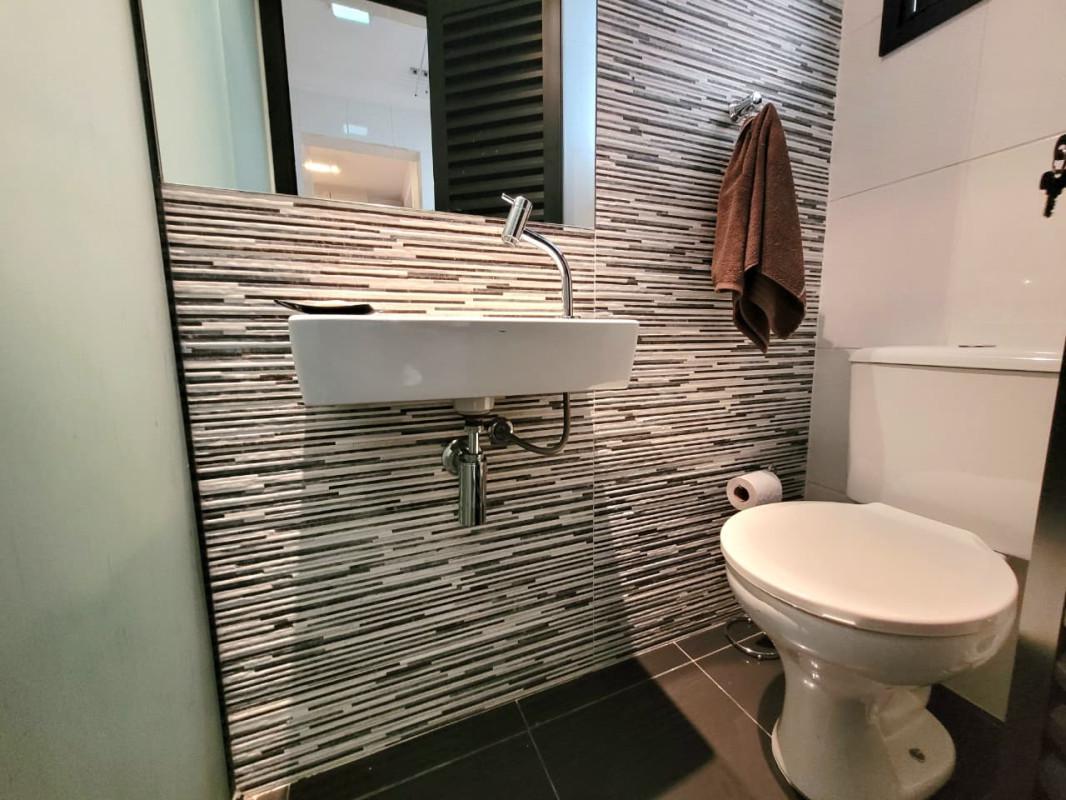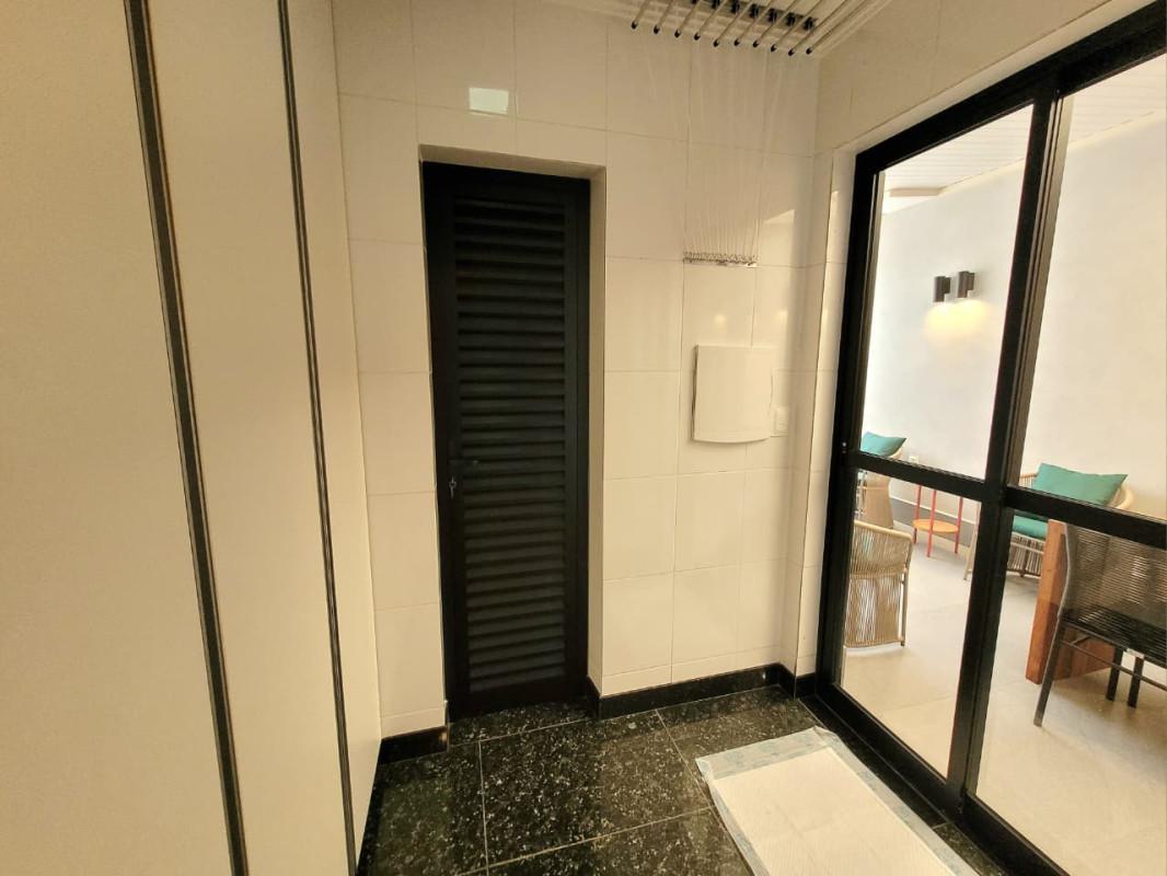 - Área de serviço independente, com banho de serviço decorado como lavabo, , piso em granito e revestimento em cerâmica.