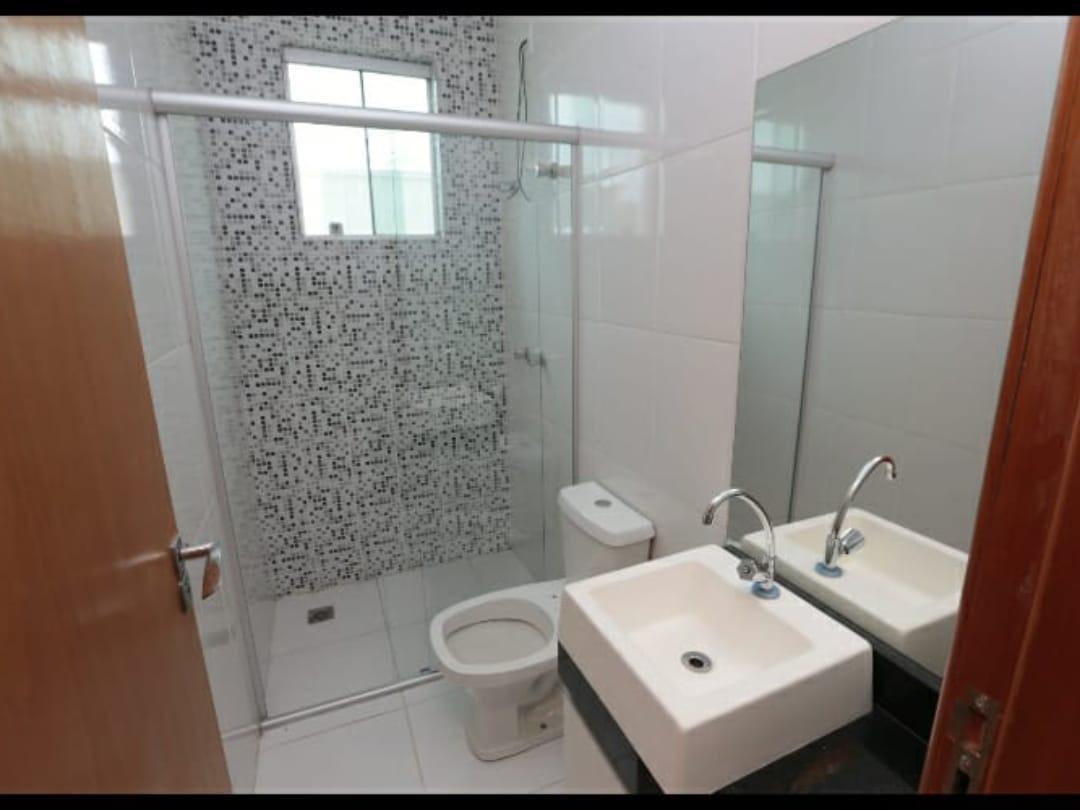 Banheiro social bem distribuído e funcional.
