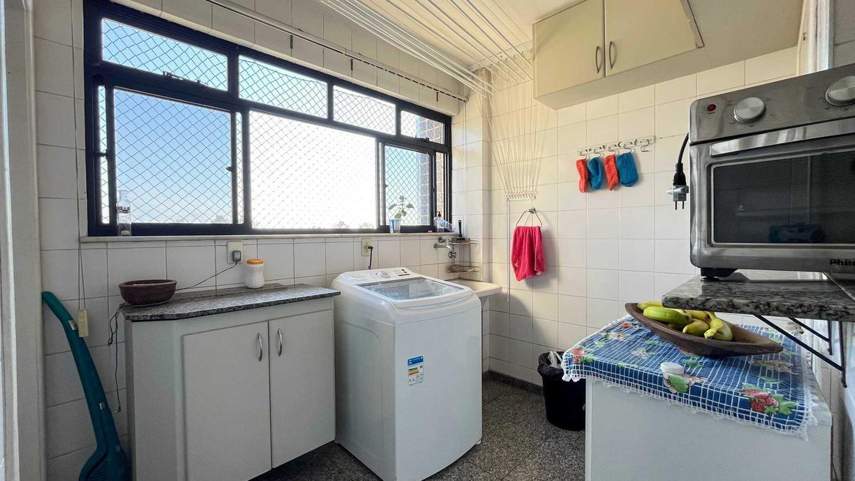 Área de serviço ampla com bancada em granito e tanque