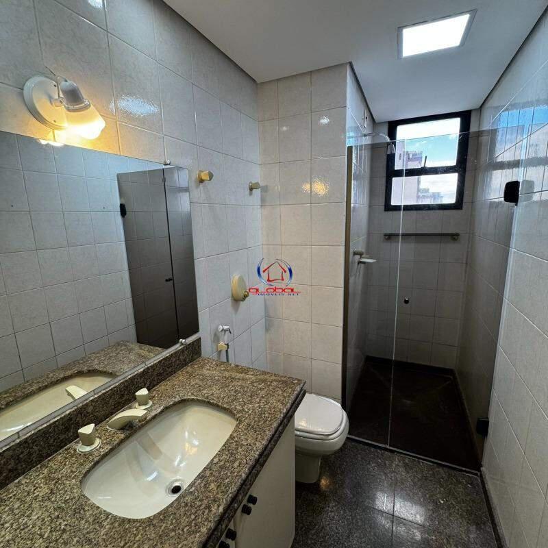 º Banho social e suíte com box blindex, armário e espelho, sendo o suíte com banheira de hidromassagem;