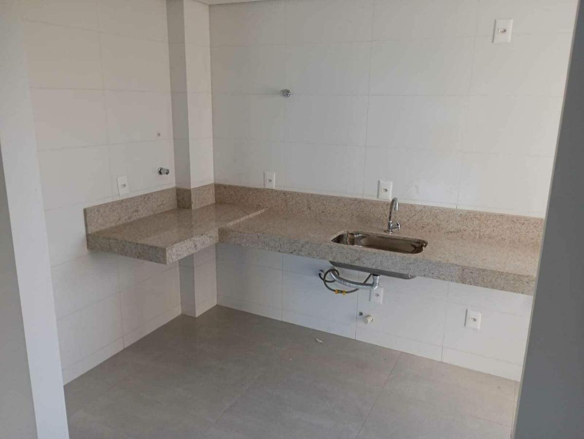 Cozinha com piso em porcelanato e bancada em granito.