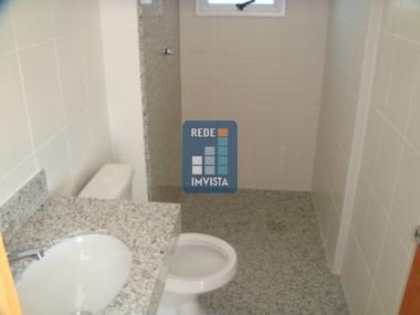 Suíte com piso e bancada em granito.