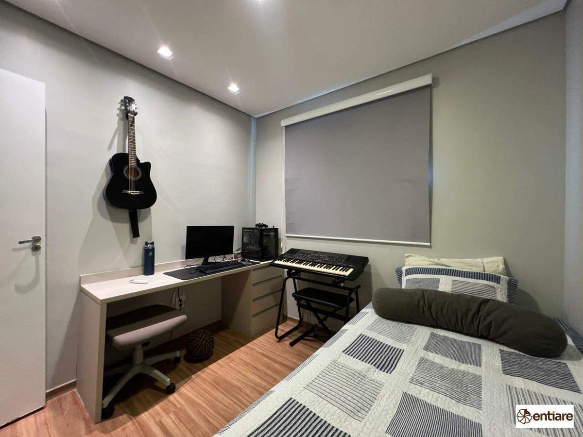 Condomínio imponente, com portaria 24H, 4 torres, cada uma delas com 2 elevadores, lazer com piscina adulto e infantil, salão de festas com cozinha gourmet, 2 áreas de churrasco com cozinha completa, campo, área de descanso, playground, bicicletário e ampla área externa com jardim.