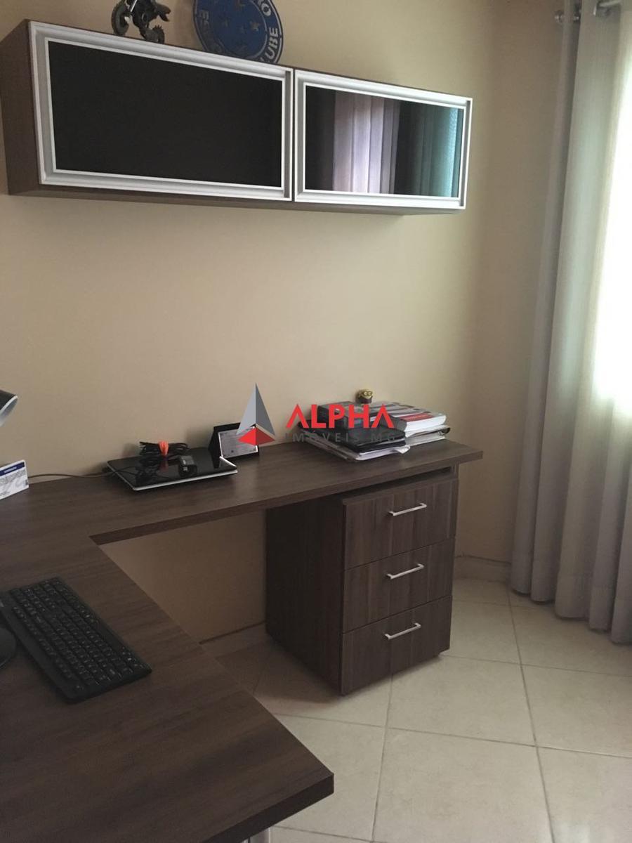Cobertura de 03 quartos sendo 02 com armários planejados, painel em madeira e 01 quarto com móveis planejados de escritório, cortinas, sala ampla com rebaixamento em gesso, iluminação, parede com textura, banheiro social 100% revestido com detalhes em pastilha, pia em mármore com cuba de louca e armário planejado, espelho e box em vidro blindex, cozinha 100% revestida, pia e bancada em granito, armários planejados, fogão Cook Top, coifa e forno, área de serviço 100% revestida com armário planejado, sala ampla com rebaixamento em gesso, iluminação, painel para TV e Rack em madeira, banheiro social 100% revestido detalhes em pastilha, área livre coberta com telhado colonial, piso em cerâmica, 01 vaga de garagem demarcada, água e luz individual.